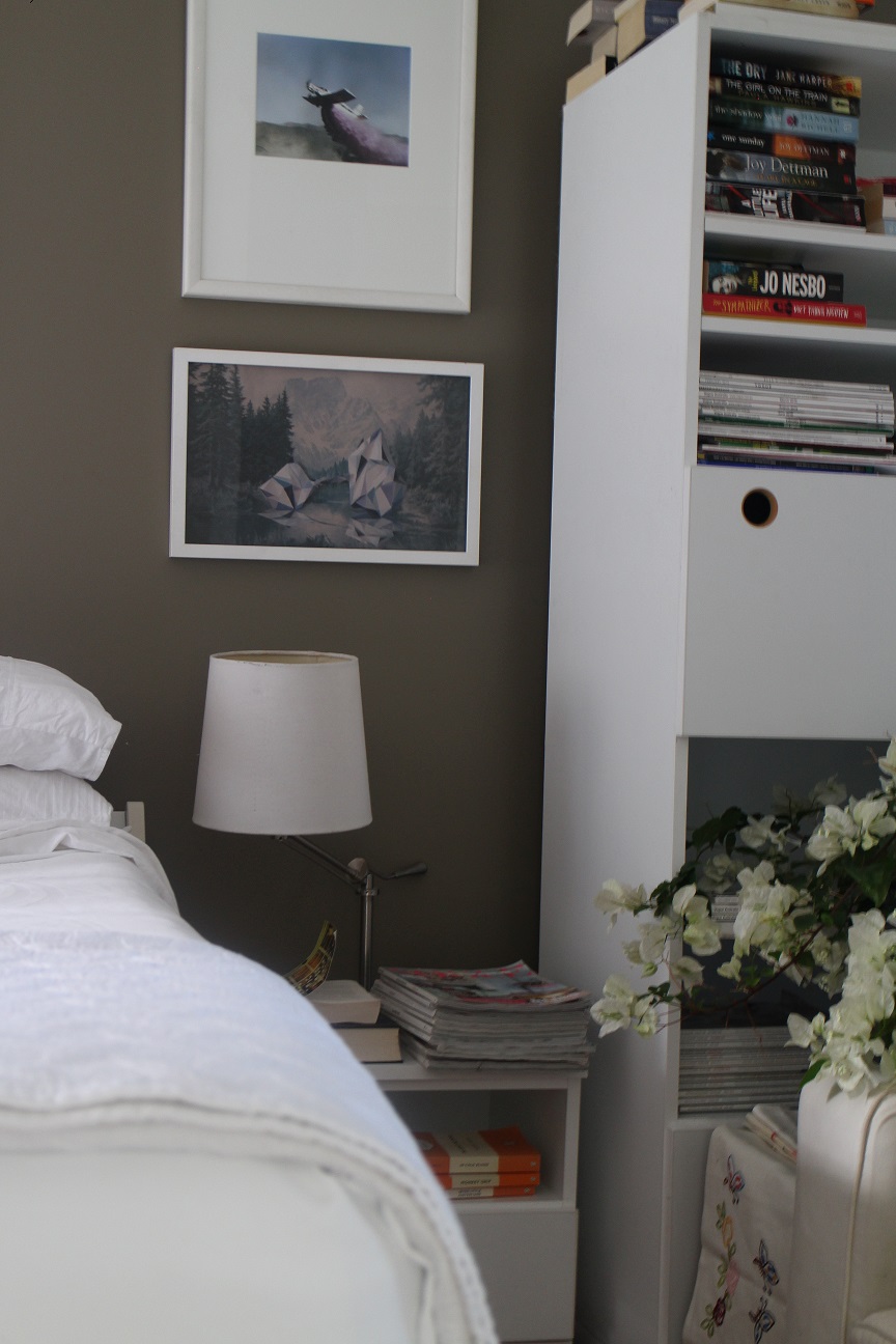 Just place two blocks on the floor topped with a board, continue building up; four surfaces in total and soon you have a great bookshelf with lots of area. Put a couple of pictures on the wall above it and it has become an exciting wall that says a lot about you, your interests and your innate style.