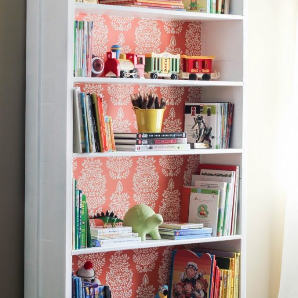 Or, paint the shelves and the sides (in, out and under unless they are already a great counter colour), then source some stunning wallpaper or wrapping paper – it needs to be thick and good quality otherwise it won’t handle the glue and it will look tacky. Measure out meticulously, glue it to the back wall of each shelf, in this way the bookshelf unit becomes a unique design of your own making. Your friends will be so envious…!