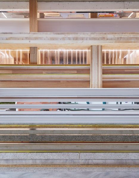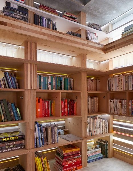 As a design, the library is imagined as a stack of materials. Like library ‘stacks’ except here the structure of the library itself is created by stacking materials. So the structure is the form and the form is the structure – an architecture that itself is made as if it were a stack of books, of one thing piled on top of another.