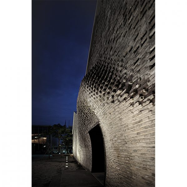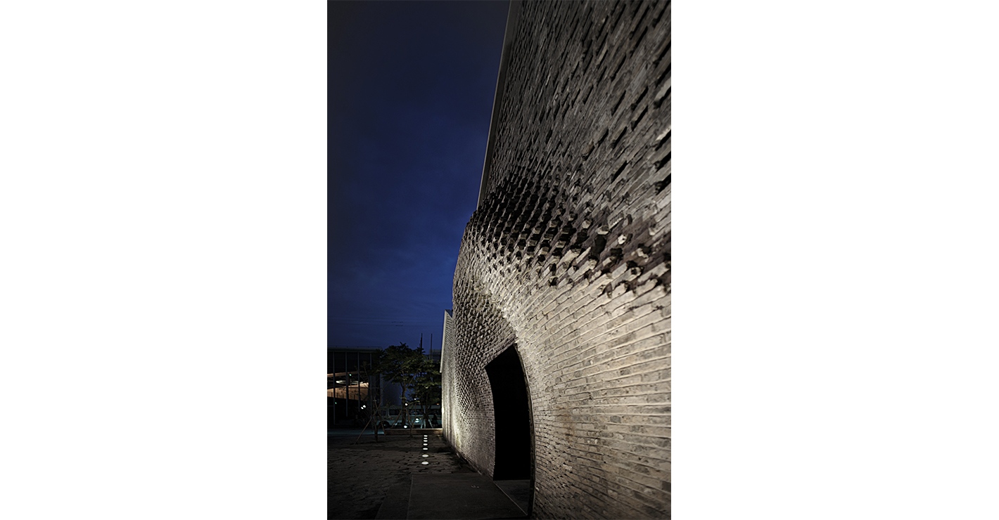 “On the other hand, the grey green bricks coordinated with this ancient building have been applied on the exterior part located on the main interface towards the park. When the wall in the entrance is curled up a lit bit, this generated wrinkle wall texture becomes the impressive part of the form manipulation, which represents the architectural expressions as well, that is, a status that embodies current cultural trends based on tradition.” Text description provided by the architects @ https://www.archdaily.com/797505/chi-she-archi-union-architects
