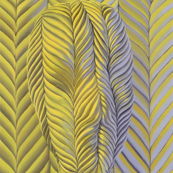 Sascha Braunig,Troll 2014 , oil on canvas on plywood, 38.7 x 30.5 cm, National Gallery of Victoria, Melbourne, © Sascha Braunig. Painted in luminous colours, the dreamlike scenes of Sascha Braunig’s (Canada born 1983) works are informed by the legacies of Op art and Surrealism with their graphic lines and otherworldly figures. The paintings Monad, Saccades and Troll, all 2014, use the conventions of portraiture as a starting point for the creation of strange, humanoid figures the artist refers to as ‘Ur-characters’ or ‘blanks’. Herm 2, 2016, features flowing folds of pink and brown that loosely suggest the form of a human body. Braunig paints from observation of small models, which she fashions from clay, sometimes drapes with cloth and sequins and then illuminates with dramatically coloured lighting.