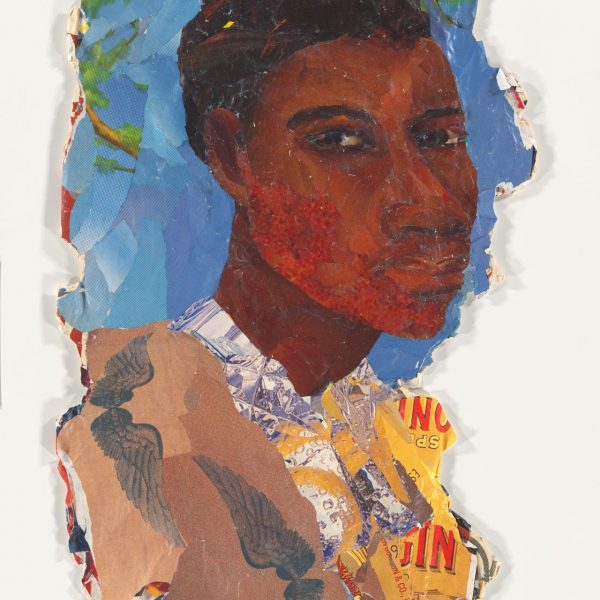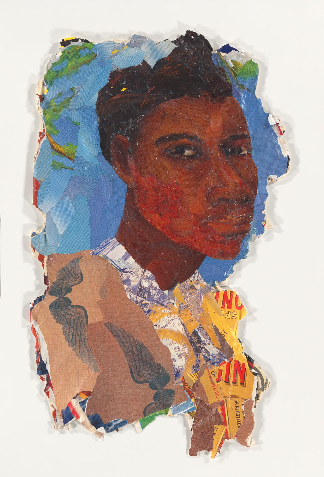 © Kay Hassan. Courtesy of the artist and Jack Shainman Gallery, New York. Kay Hassan (South Africa born 1956) has worked in various media including painting, installation, video, sculpture and photography, but he is best known for his large-scale ‘paper constructions’. Hassan creates imposing portraits by shredding billboard paper, and gluing the tattered scraps of commercial advertisements back together to assemble large collages. The portraits and his technique are inspired by the people of Johannesburg. He says that ‘our lives have always been torn and put together – people have always been pushed around. You see it in the streets, in the kids begging, those eyes, the way they look at you’.