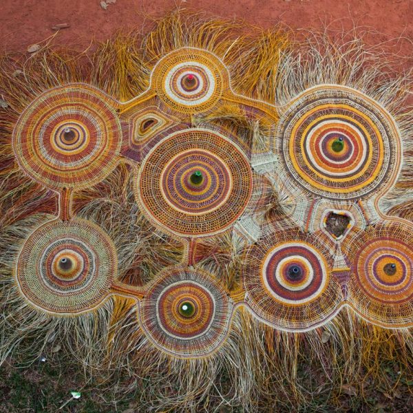 Proposed acquisition, Photo: Tobias Titz. In 2016 Alvaro Catalán de Ocón and members of his studio travelled to Ramingining in Arnhem Land to work with a group of Yolngu artists. The collaborative design process, led by Catalán de Ocón, devised a way to join weavings, repurposing traditional Yolngu mats as PET Lamp chandelier. The Yolngu practice of weaving is intrinsically linked to the experience of being a woman, since the knowledge associated with collecting, processing and dyeing the pandanus plant is transmitted from mother to daughter. The combination of many artists’ hands instils in each mat the identity and place specific to each artist, as well as a connection with Country from which the materials have been gathered.