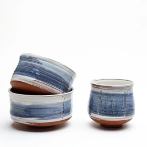 Making pots from her studio in Falmouth, Amanda uses local clay from St.Agnes in Cornwall; the pots are electric fired to a high temperature. Her current work is glazed with a subtle pale blue that is intended to represent the soothing tranquillity of Cornwall’s sea and sky.