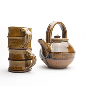 Mingei: During his first trip to Korea in 1916, Soetsu Yanagi collected pottery items manufactured by local craftsmen. In 1924, he established the Korean Folk Craft Museum in Seoul. Understanding that the Korean wares he gathered had been made by unknown craftsmen, Yanagi became interested in Japan’s own cultural heritage and started collecting craft items made by nameless Japanese artisans: lacquer ware, pottery, textiles, and woodwork. In 1925, Soetsu Yanagi, with his friends Shoji Hamada and Kanjiro Kawai, coined the term Mingei to describe this new intellectual and aesthetical movement. Formed from minshu (民衆common people) and kogei (工芸craft), Yanagi translated its meaning in English into “folk crafts”. Today, under current Lead Potter Roelof Uys, the Leach Studio has returned to offering apprenticeships and producing reduction fired Standard Ware. Text from Japan Objects