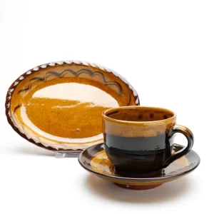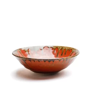 Raku Ware: Japanese hand-molded lead-glazed earthenware originally invented in 16th-century Kyoto by the potter Chōjirō, who was commissioned by Zen tea master Rikyū to design wares expressly for the tea ceremony. Quite distinct from wares that preceded it, raku represents an attempt to arrive at a new kind of beauty by deliberate repudiation of existing forms. The shape of the vessels is extremely simple: a wide, straight-sided bowl set on a narrow base. Because raku wares are molded entirely by hand rather than thrown on a wheel, each piece clearly expresses the individuality of the maker’s hand, and pieces tend to be unique creations. The glaze colours include dark brown, light orange-red, straw colour, green, and cream. Text Encyclopaedia Britannica